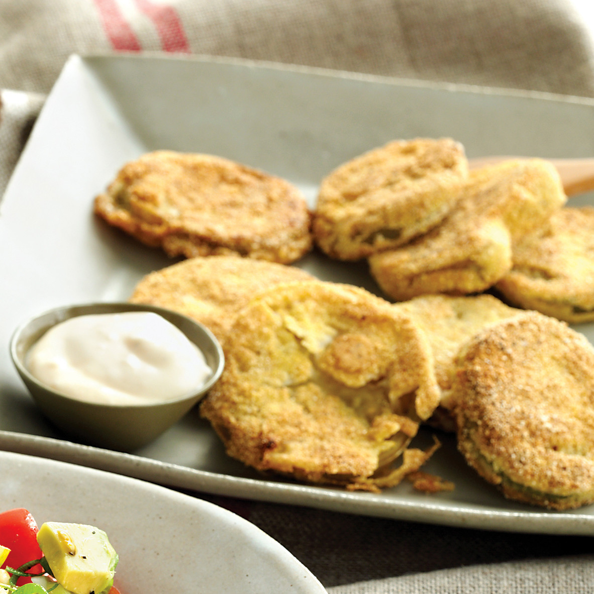 Fried Green Tomato Stack from chefsavvy.com We do this almost every time, but once my husband did it (he's got a better grip than i d0) and the chips dried much faster and the resulting crispy chips were super crispy. I prefer peanut oil over olive oil because of its high smoke point but use what you have. But it takes it up a notch or three because it provides a recipe for a delicious dipping sauce to go along with it. Squeeeeeeeze out your frozen green beans before coating them. I have the air fryer xl 5.3 qt and it is so easy to use. I typically fry mine in bacon fat in a cast iron skillet. Dec 02, 2020 · garnish a basket of fried oysters with lemon wedges or parsley and serve with a few simple and delicious sides. Fried green tomatoes are so crispy, crunchy, and good all the way around.